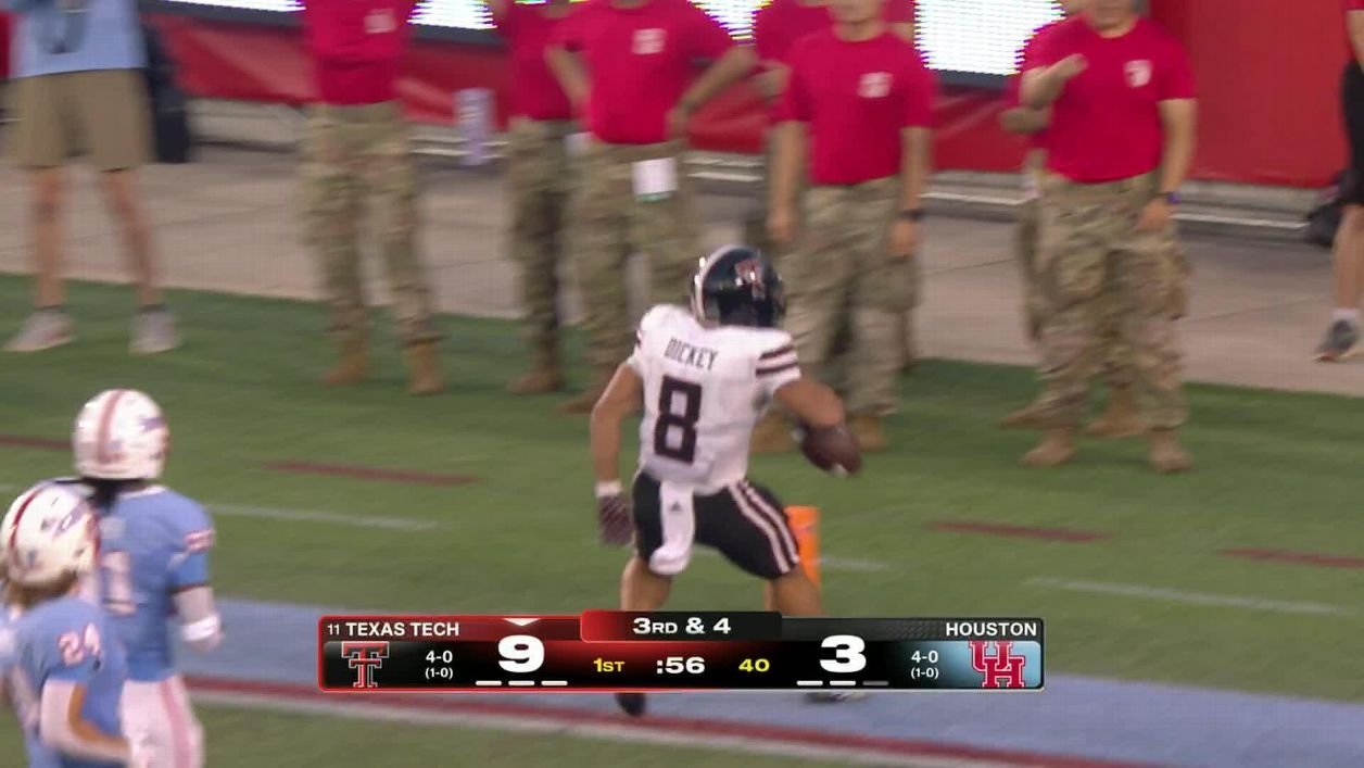 From the opening whistle, the Red Raiders set the tone—fast, physical, and fearless. But it was early in the second quarter when Dickey’s moment arrived. Lined up wide on the right, the sophomore speedster found himself in single coverage. Quarterback Behren Morton saw it instantly, delivering a perfect strike over the middle. Dickey caught it in stride, sliced between two defenders, and turned on the jets—leaving the Houston secondary grasping at air as he sprinted 69 yards to the end zone.