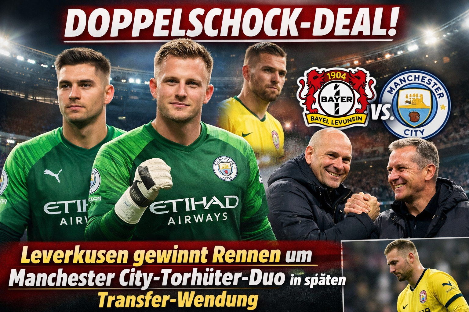 In einer atemberaubenden Kehrtwende auf dem Transfermarkt hat Bayer 04 Leverkusen das Rennen um das begehrte Torhüter-Duo von Manchester City für sich entschieden. Die Werkself sichert sich in letzter Minute Stefan Ortega und James Trafford – ein Doppelschlag, der die Bundesliga und die Premier League gleichermaßen schockiert.