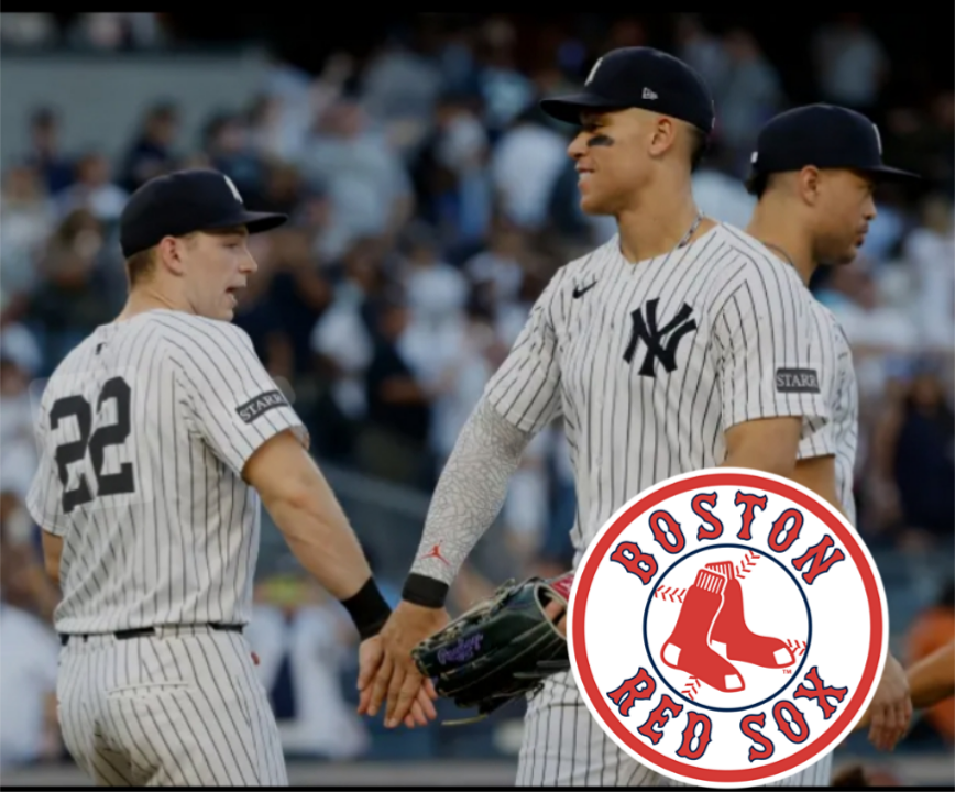 On the other side of the rivalry, the Boston Red Sox arrive with a renewed sense of purpose. The Red Sox logo superimposed on the image symbolizes their looming presence, a constant thorn in the Yankees’ side. This rivalry, one of the most intense in Major League Baseball, has seen its share of highs and lows, but tonight’s game feels different. For the Yankees, it’s not just about winning—it’s about reclaiming a sense of identity that seems to have slipped away in recent weeks. The Red Sox, meanwhile, are riding a wave of momentum, with their fans buzzing with anticipation for a potential upset.